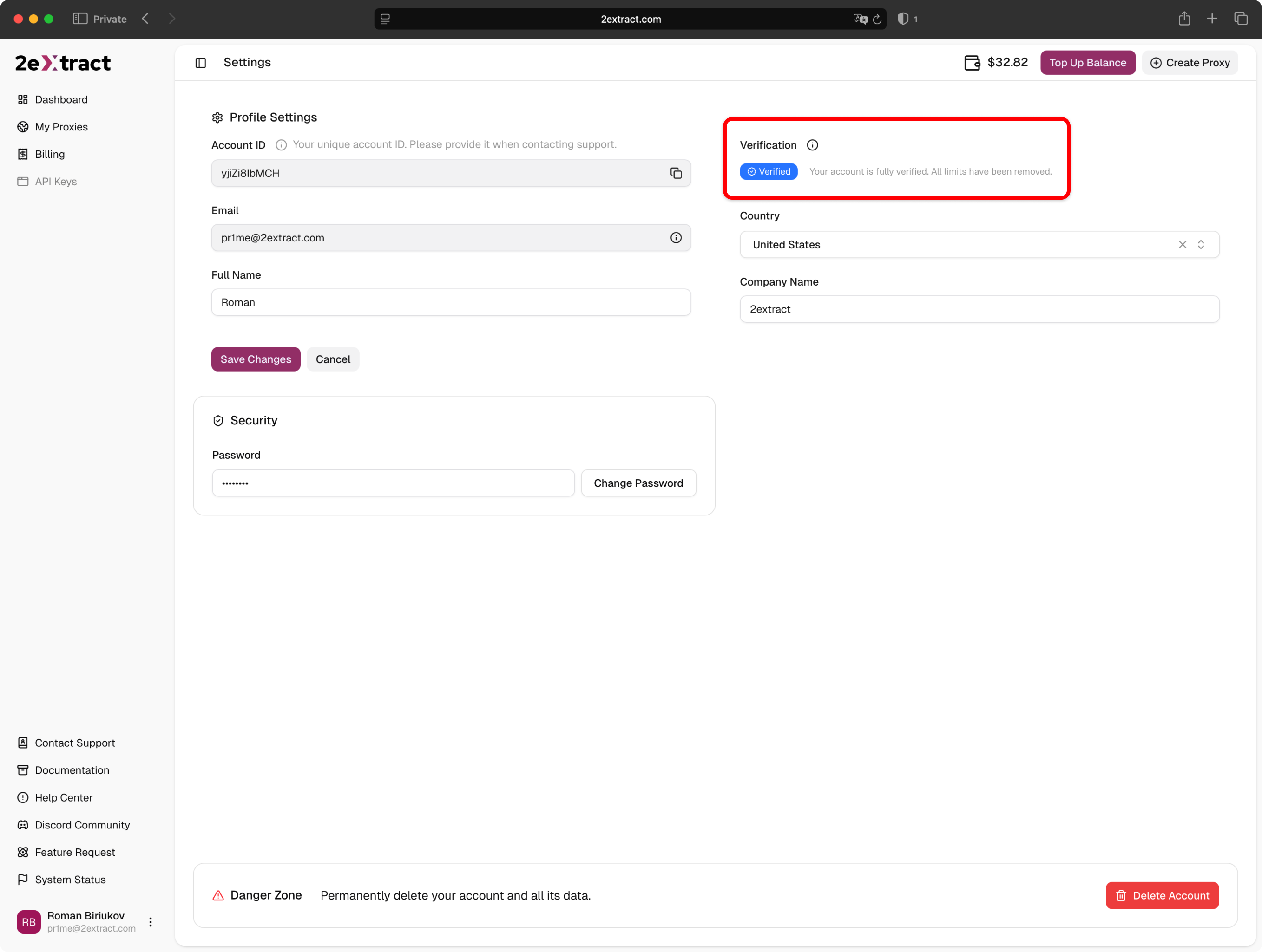 We value your privacy and data security. That is why we do not store your personal identity documents on our servers. We partner with Didit, a specialized and GDPR-compliant identity verification provider. Didit handles the secure processing and validation of your documents. 2extract only receives the confirmation status (Verified/Rejected).How to Verify Your Account