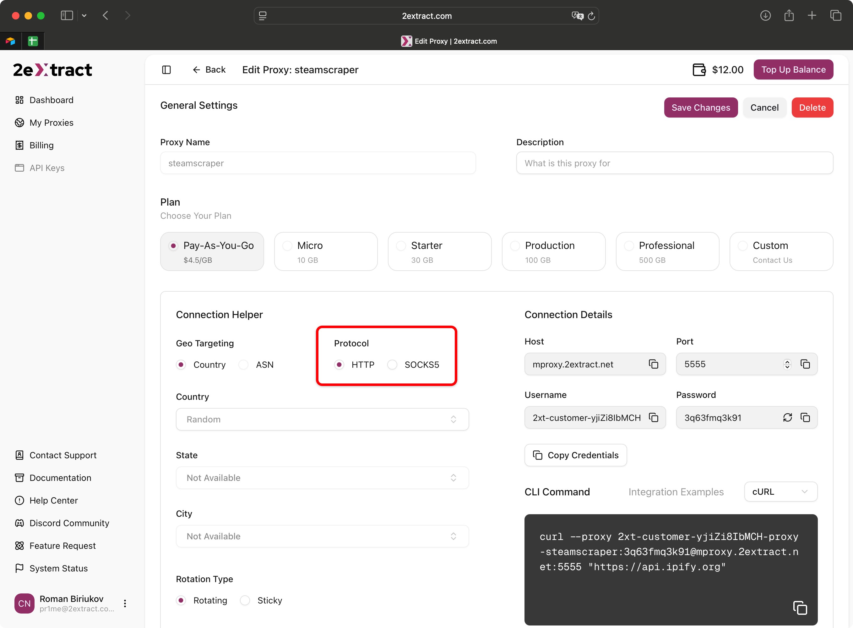 You can select your preferred protocol when creating or editing a proxy in the “Connection Helper” section of your Proxy Settings page.